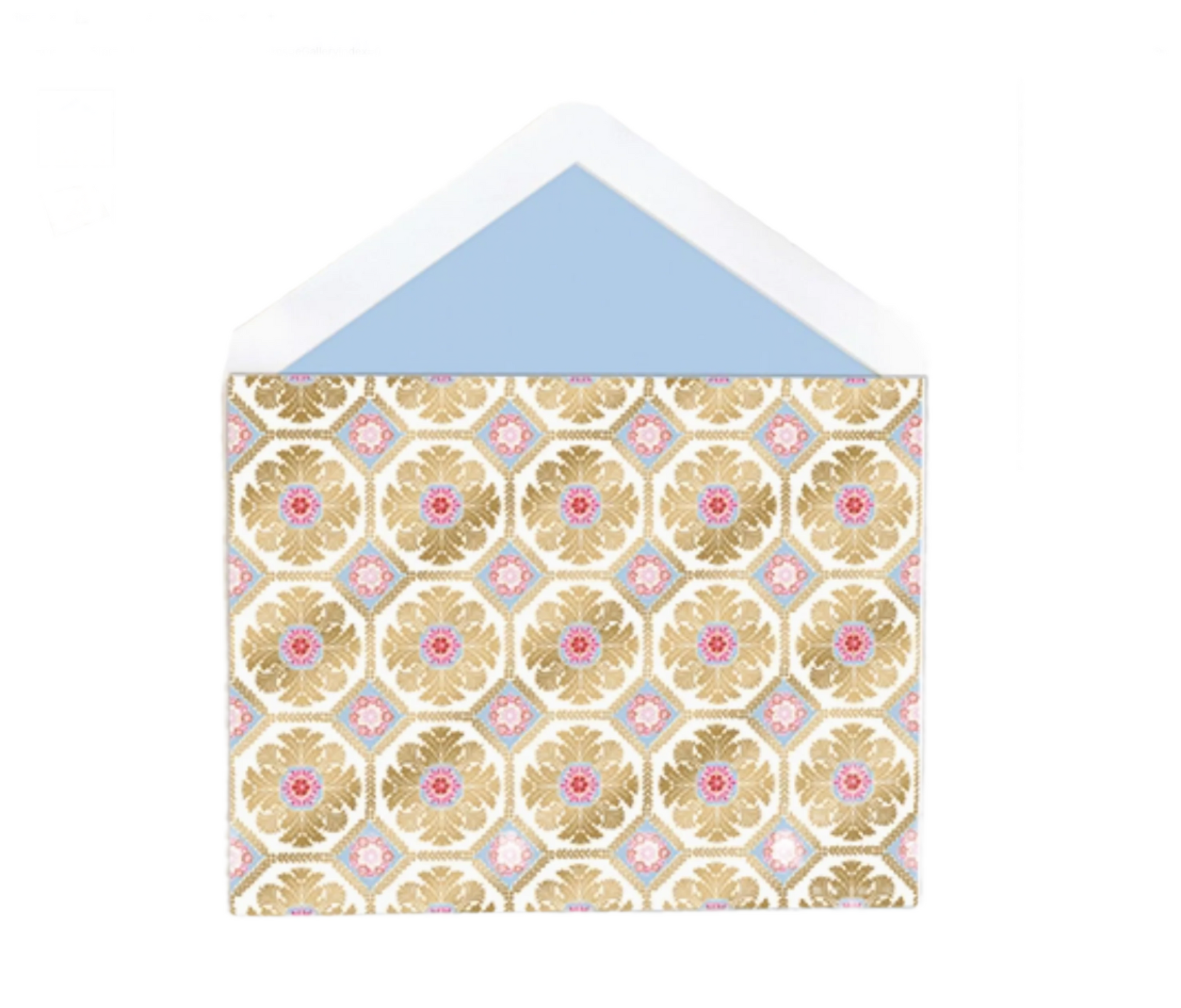 Includes 12 folded decorative cards with gold foil accents and coordinating lined envelopes.