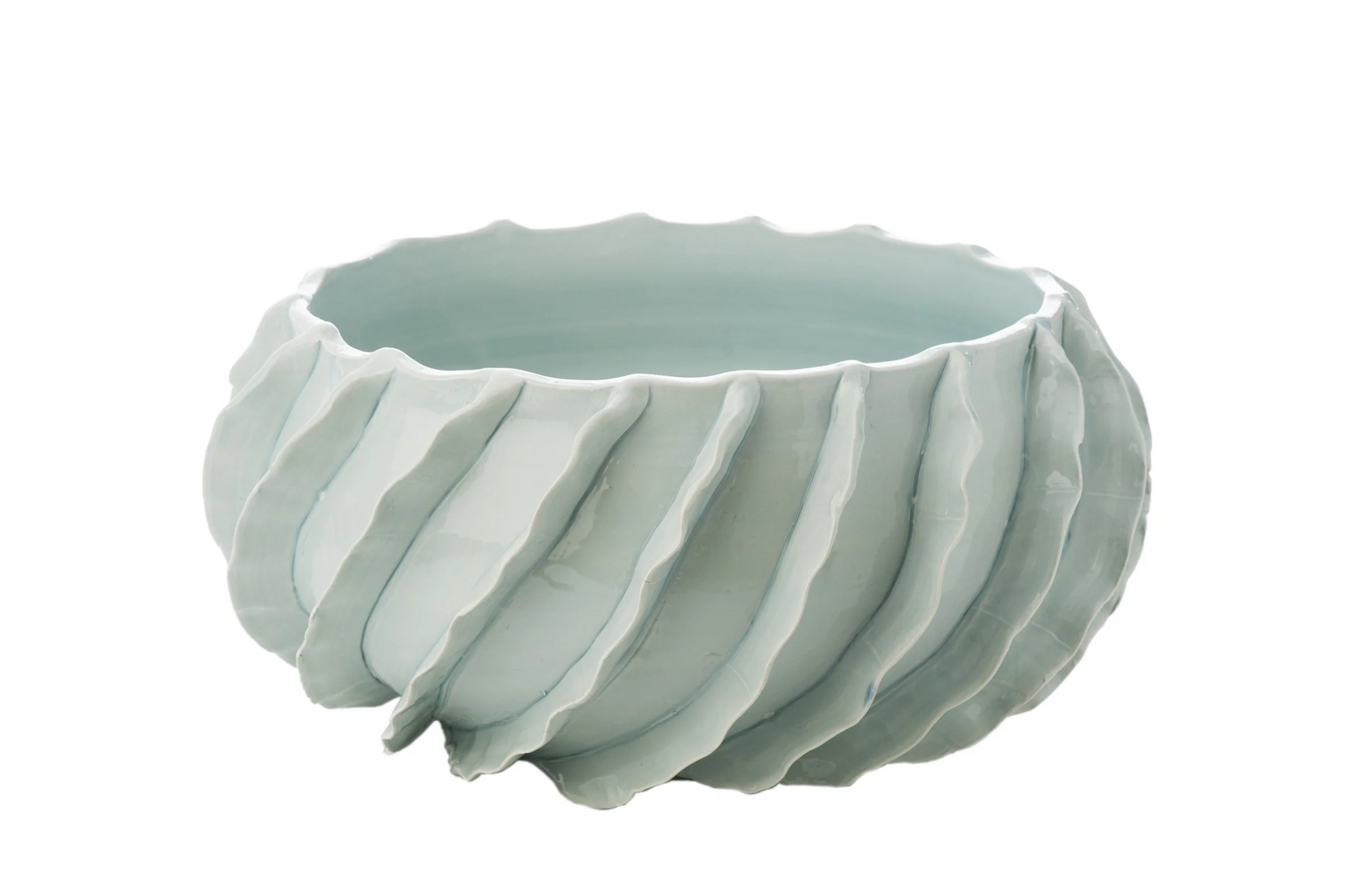 Crimped Ceramic Bowl - Glazed Blue